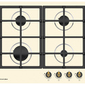 Поверхность: варочная панель • Тип поверхности: газовая • Рабочая поверхность: эмаль • Число конфорок: 4 • Установка: независимая • Газовые конфорки: всего - 4 • Газ-контроль конфорок: есть • Тип управления: механическое • Переключатели: поворотные • Электроподжиг: есть, автоматический • Размеры: 600x510x45 мм • Размер ниши для встраивания: 560x480 мм • Цвет: панель - топленое молоко
