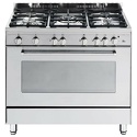 Тип конфорок: газовые • Рабочая поверхность: нерж. сталь • Тип духовки: газовая • Размеры (ШxВxГ): 900x850x600 мм • Цвет: металлик • Газовые конфорки: всего - 5 (1 конфорка "Тройная корона") • Газ-контроль конфорок: есть • Объем духовки: 85 л • Максимальная температура духовки: 285 °С • Конвекция: есть • Гриль: есть, газовый • Очистка духовки: традиционная • Подсветка: есть • Количество стекол дверцы духовки: 2