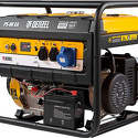 Топливо: бензин • На выходе генератора: 7 кВт, 220 B, розетки 3 шт • Работа: до 7.8 ч, бак 25 л • Габариты: 90 кг