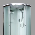 Монтаж душевой кабины осуществляется без использования силикона. Латунный смеситель с керамическими картриджами и резьбовыми соединениями. 100% акриловый поддон с дренажными отводами, высотой 15 см усиленный металлическим каркасом с вставкой из антибактериального полимера. Матовое безопасное закаленное сверхпрочное стекло толщиной 4 мм с антикальциевой обработкой. Душевая штанга с регулировкой лейки по высоте и ручная лейка с силиконовыми форсунками диаметром 140 мм с функцией переключения режимов.