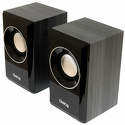 Звуковая схема: 2.0 • Суммарная мощность (RMS): 6 Вт • Материал корпуса колонок: MDF • Частотный диапазон: 150 Гц - 20 КГц • Линейный вход: стерео (mini-jack 3.5мм) • Пульт управления: проводной • Количество полос фронтальных колонок: 1 • Магнитное экранирование колонок: есть • Питание: от порта USB • Размеры фронтальных колонок (ШxВxГ): 83x130x80 мм • Вес комплекта: 0.242 кг