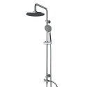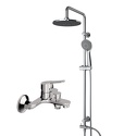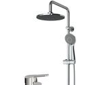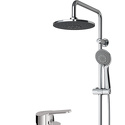 Устройство: душевая система • Смеситель: джойстик • Ручной душ (душевая лейка): размер 110 мм, настройки 5 шт • Верхний душ (тропический): размер 250 мм, настройки 1 шт • Комплектация: ручной душ, верхний душ, смеситель, стойка, шланг, крепление ручного душа