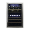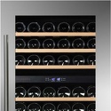 Тип: двухкамерный винный шкаф • Расположение: встраиваемый • Цвет: нерж.сталь, чёрный • Размеры (ШxВxГ): 590x885x560 мм • Количество дверей: однодверный • Общий объем: 117 л • Объем холодильной камеры: 117 л • Винный шкаф: 42 бут. • Разморозка: автоматическая • Управление: цифровой дисплей, электронное • Освещение в холодильной камере: есть • Перевешиваемые двери: есть • Материал полок: дерево