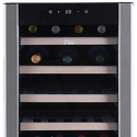Тип: однокамерный винный шкаф • Расположение: отдельностоящий • Количество компрессоров: 1 • Цвет: нерж.сталь, чёрный • Размеры (ШxВxГ): 395x840x580 мм • Количество дверей: однодверный • Общий объем: 263 л • Винный шкаф: 38 бут. • Управление: цифровой дисплей, электронное • Материал полок: дерево • Класс энергопотребления: B • Годовой расход энергии: 175 кВтч • Максимальный уровень шума: 39 дБ
