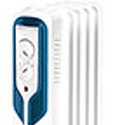 масляный радиатор • макс. мощность 1 кВт • 5 секций • встроенный вентилятор • колеса для перемещения • термостат • 290x135x590 мм • вес 4.6 кг