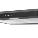конструкция плоская • монтаж настенный • ширина 59.5 см • управление механическое/кнопочное • производительность мотора 390 м³/ч • цвет черный