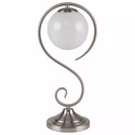 Настольная лампа декоративная стиля модерн для гостиной, кабинета или спальни имеет размеры 200x430 мм. Арматура светильника окрашена в серебрянный цвет. Лампы в комплекте - отсутствуют. В светильнике применяются лампы накаливания или светодиодная LED-лампа. Цвет плафонов - белый, с матовой поверхностью. Материал плафонов - стекло. Класс электробезопасности - II, степень пылевлагозащиты (IP) - 20. Максимальная мощность лампы (Вт) - 40. Светильник размещается на столе.