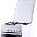 Тип конфорок: газовые • Рабочая поверхность: эмаль • Тип духовки: электрическая • Размеры (ШxВxГ): 500x850x605 мм • Цвет: белый • Газовые конфорки: всего - 4 • Объем духовки: 50 л • Очистка духовки: традиционная • Подсветка: есть • Количество стекол дверцы духовки: 2 • Тип управления: механическое • Переключатели: поворотные • Ящик для посуды: есть • Комплектация: решетка