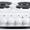 Тип конфорок: электрические • Рабочая поверхность: эмаль • Тип духовки: электрическая • Размеры (ШxВxГ): 500x580x540 мм • Цвет: белый • Конфигурация электрических конфорок: 3 x 1300 g 1 x 2100 g • Электрические конфорки: всего - 4 • Объем духовки: 50 л • Очистка духовки: традиционная • Подсветка: есть • Тип управления: механическое • Переключатели: поворотные • Ящик для посуды: есть