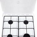 Тип конфорок: газовые • Рабочая поверхность: эмаль • Тип духовки: газовая • Размеры (ШxВxГ): 500x850x580 мм • Цвет: белый • Газовые конфорки: всего - 4 • Объем духовки: 50 л • Подсветка: есть • Количество стекол дверцы духовки: 2 • Тип управления: механическое • Переключатели: поворотные • Ящик для посуды: есть • Комплектация: противеней - 1, решетка