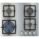 Поверхность: варочная панель • Рабочая поверхность: закаленное стекло • Число конфорок: 4 • Установка: независимая • Газовые конфорки: всего - 4 (1 конфорка "Тройная корона") • Газ-контроль конфорок: есть • Тип управления: механическое • Переключатели: поворотные • Электроподжиг: есть, автоматический • Размеры: 590x515x50 мм • Размер ниши для встраивания: 560x485 мм • Цвет: панель - белый, нерж.сталь, черный