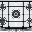 Поверхность: варочная панель • Тип поверхности: газовая • Число конфорок: 5 • Установка: независимая • Газовые конфорки: всего - 5 (1 конфорка "Тройная корона") • Газ-контроль конфорок: есть • Тип управления: механическое • Переключатели: поворотные • Электроподжиг: есть, автоматический • Размеры: 750x510 мм • Размер ниши для встраивания: 550x480 мм • Цвет: панель - серебристый