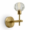 Бра стиля лофт для гостиной, кабинета или спальни имеет размеры 90x193x150 мм. Арматура светильника окрашена в бронзовый цвет. Лампы в комплекте - отсутствуют. В светильнике применяются галогеновая лампа или светодиодная LED-лампа. Цвет плафонов - неокрашенный, с прозрачной поверхностью. Материал плафонов - хрусталь. Класс электробезопасности - I, степень пылевлагозащиты (IP) - 20. Максимальная мощность лампы (Вт) - 40. Светильник размещается на стене.
