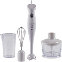 Тип: погружной • Мощность: 550 Вт • Управление: механическое • Количество скоростей: с плавной регулировкой • Турборежим: есть • Венчик для взбивания: есть • Измельчитель: есть, 0.5 л • Материал погружной части: металл • Материал корпуса: пластик • Мерный стакан в комплекте: есть,0.5 л