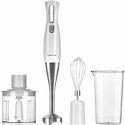 Поэтому компания выпускает широкий ассортимент наборов сменных насадок, продаваемых вместе с погружным блендером. Из-за этого прибор выполняет все функции стационарного устройства, и в зависимости от мощности справляется почти со всеми видами продуктов.