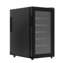 Тип: однокамерный винный шкаф • Расположение: отдельностоящий • Количество компрессоров: 1 • Цвет: чёрный • Размеры (ШxВxГ): 355x645x500 мм • Количество дверей: однодверный • Объем холодильной камеры: 48 л • Винный шкаф: 18 бут. • Управление: электронное • Освещение в холодильной камере: есть • Материал полок: металл • Регулируемые ножки: есть