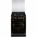 Тип конфорок: газовые • Рабочая поверхность: эмаль • Тип духовки: газовая • Размеры (ШxВxГ): 600x850x600 мм • Цвет: черный • Газовые конфорки: всего - 4 • Газ-контроль конфорок: есть • Объем духовки: 52 л • Гриль: есть • Газ-контроль духовки: есть • Очистка духовки: традиционная • Подсветка: есть • Вертел: есть • Тип управления: механическое • Переключатели: кнопочные, поворотные • Часы: есть • Таймер: звуковой