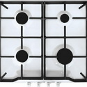Поверхность: варочная панель • Тип поверхности: газовая • Рабочая поверхность: эмаль • Число конфорок: 4 • Установка: независимая • Газ-контроль конфорок: есть • Тип управления: механическое • Переключатели: поворотные • Электроподжиг: есть, автоматический • Размеры: 590x520x94 мм • Размер ниши для встраивания: 560x500 мм • Цвет: панель - белый