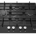 Поверхность: варочная панель • Тип поверхности: газовая • Рабочая поверхность: закаленное стекло • Число конфорок: 4 • Установка: независимая • Газовые конфорки: всего - 4 • Газ-контроль конфорок: есть • Тип управления: механическое • Переключатели: поворотные • Электроподжиг: есть, автоматический • Размеры: 600x525x100 мм • Размер ниши для встраивания: 554x486 мм • Цвет: панель - черный
