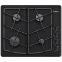 Поверхность: варочная панель • Тип поверхности: газовая • Рабочая поверхность: эмаль • Число конфорок: 4 • Установка: независимая • Газовые конфорки: всего - 4 • Газ-контроль конфорок: есть • Тип управления: механическое • Переключатели: поворотные • Электроподжиг: есть, автоматический • Размеры: 590x510x95 мм • Размер ниши для встраивания: 554x494 мм • Цвет: панель - черный