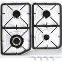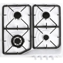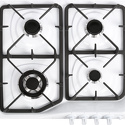 Поверхность: варочная панель • Тип поверхности: газовая • Рабочая поверхность: эмаль • Число конфорок: 4 • Установка: независимая • Газовые конфорки: всего - 4 • Тип управления: механическое • Переключатели: поворотные • Электроподжиг: есть, автоматический • Размеры: 590x520x105 мм • Размер ниши для встраивания: 554x494 мм • Цвет: панель - белый, рамка - белый