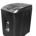 для офиса • уровень секретности 4 • разовая загрузка 13 листов • уничтожает пластиковые карты • емкость корзины 37 л • 354x463x576 мм • вес 15.5 кг