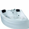 Материал: акрил • Расположение: отдельно стоящая, угловая конструкция • Форма: четверть круга • Количество мест: двухместная • Гидромассаж: есть, 5 форсунок • Подсветка: есть • Комфорт: подголовник • Смеситель в комплекте: есть • Размеры (ДxШxВ): 150x150x66 см