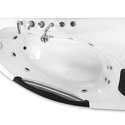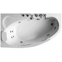 Материал: акрил • Расположение: отдельно стоящая, угловая конструкция • Форма: нестандартная • Количество мест: одноместная • Гидромассаж: есть, 5 форсунок • Подсветка: есть • Комфорт: подголовник • Смеситель в комплекте: есть • Размеры (ДxШxВ): 160x95x59 см