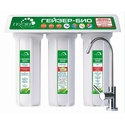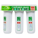 Трехступенчатый фильтр Гейзер Био 332 - это универсальное приспособление для очистки жесткой воды до питьевого качества. Трехступенчатая очистка осуществляется при помощи тремя различными картриджами: Арагон-Ж БИО, который задерживает мелкие механические частицы и растворенные химические примеси, картридж БС - для удаление избыточных солей жесткости, картридж ММВ, который устраняет посторонние запахи и хлор, а также придает воде приятный вкус. В каждом из картриджей содержится серебро в металлической, не смываемой форме. Корпус в прозрачном исполнении изготовлен из пластика.