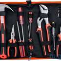 Комплектация- Разводной ключ;- Молоток-гвоздодер 0,25 кг;- Длинногубцы;- Крестовая и шлицевая отвертки с прозрачной ручкой 5х75 мм - 2 шт;- Крестовая и шлицевая отвертки с прозрачной ручкой 6х100 мм - 2 шт;- Детектор напряжения;- Пассатижи;- Набор шестигранных ключей 8 шт;- Переставные клещи;- Сумка.