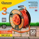 Производитель: Glanzen Модель: EB-50-007 - Розеток: евро 4 шт - Длина кабеля: 50 м - Мощность подключения: 3500 Вт, 16 А Описание