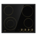 Поверхность: варочная панель • Тип поверхности: электрическая • Рабочая поверхность: стеклокерамика • Число конфорок: 4 • Установка: независимая • Электрические конфорки: керамические; всего - 4 (4 конфорки быстрого разогрева, 1 двухконтурная) • Конфигурация электрических конфорок: 2 x 145 мм 1200 1 x 180 мм 1800 1 x 120/210 мм 2200 • Индикаторы остаточного тепла: есть • Тип управления: механическое