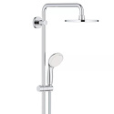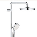 Производитель: Grohe Модель: Tempesta Cosmopolitan 200 26244 - Устройство: душевая система - Смеситель: джойстик - Ручная лейка: размер 100 мм, настройки 2 шт - Верхний душ: размер 200 мм, настройки 1 шт - Комплектация: ручной душ, смеситель, стойка, шланг, крепление ручного душа Описание