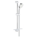 Устройство: душевой набор • Ручная лейка: размер 100 мм, настройки 4 шт • Комплектация: ручной душ, стойка, шланг, крепление ручного душа, полка