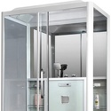 Закрытая кабина, полностенная, двери раздвижные, материал поддона: акрил, материал стенок: стекло, тропический душ, вертикальный гидромассаж, габариты (ШхВхД): 90x215x120 см
