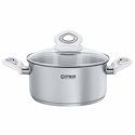 В наборе: кастрюля, крышка • Размер: до 20 см • Объем: до 2.8 л • Материал: сталь
