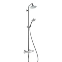 Производитель: Hansgrohe Модель: Croma Showerpipe 220 27188 - Устройство: душевая система - Смеситель: термостатический - Верхний душ: размер 220 мм, настройки 1 шт - Комплектация: ручной душ, смеситель, стойка, шланг, крепление ручного душа Описание