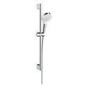 Производитель: Hansgrohe Модель: Crometta Vario 26555 - Устройство: душевой набор - Ручная лейка: размер 100 мм, настройки 2 шт - Комплектация: ручной душ, стойка, шланг, крепление ручного душа Описание