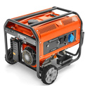 Топливо: бензин • На выходе генератора: 5 кВт, 220 B, 2 розетки • Работа: бак 25 л • Габариты: 88 кг