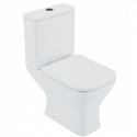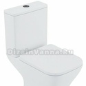 Тип: унитаз-компакт, напольный • Чаша: воронкообразная, прямоугольная (скошенные углы) • Слив: горизонтальный • Подвод: нижний • Материал: санфарфор