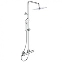 Устройство: душевая система • Смеситель: термостатический • Ручной душ (душевая лейка): размер 110 мм, настройки 3 шт • Верхний душ (тропический): размер 200 мм, настройки 1 шт • Комплектация: ручной душ, верхний душ, смеситель, стойка, шланг, крепление ручного душа