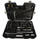 Набор: 101 шт • Ключи: комбинированные, разрезные, разводной • Головки: 6-ти гранные головки, головки E-профиль, свечные • Ключей-трещоток: 2 шт • Хранение: пластиковый кейс