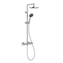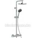 Устройство: душевая система • Смеситель: термостатический • Ручной душ (душевая лейка): размер 100 мм, настройки 3 шт • Верхний душ (тропический): размер 200 мм, настройки 1 шт • Комплектация: ручной душ, верхний душ, смеситель, стойка, шланг, крепление ручного душа
