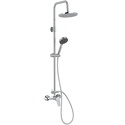 Устройство: душевая система • Смеситель: джойстик • Ручной душ (душевая лейка): размер 100 мм, настройки 5 шт • Верхний душ (тропический): размер 200 мм, настройки 1 шт • Комплектация: ручной душ, верхний душ, смеситель, стойка, шланг, крепление ручного душа