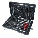 Набор: 216 шт • Ключи: комбинированные, шестигранные • Головки: 6-ти гранные головки, головки E-профиль, свечные • Ключей-трещоток: 3 шт • Хранение: пластиковый кейс