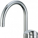 Назначение: кухонный • Конструкция: однорычажный • Монтаж: горизонтальный • Клапан: керамический • Материал: покрытие - хром • Подводка: гибкая • Монтажные отверстия: 1 отверстие • Форма излива: традиционная • Душевая лейка в комплекте: нет • Аэратор: есть • Донный клапан в комплекте: есть