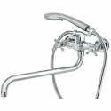 Назначение: универсальный • Конструкция: с раздельными клапанами • Монтаж: вертикальный • Клапан: керамический • Монтажные отверстия: 2 отверстия • Форма излива: традиционная • Душевая лейка в комплекте: есть • Держатель для душевой лейки: на смесителе • Донный клапан в комплекте: есть