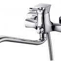 Назначение: ванна+душ • Конструкция: однорычажный • Монтаж: вертикальный • Материал: покрытие - хром • Подводка: жесткая • Монтажные отверстия: 2 отверстия • Душевая лейка в комплекте: нет • Донный клапан в комплекте: есть