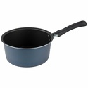 Компактная кастрюля-ковш на 2,0 литра без крышки для быстрого приготовления повседневных блюд в небольшом объеме. Европейское антипригарное покрытие внутри надежно защищает еду от пригорания, внешний слой декоративного покрытия также имеет антипригарные свойства, легко моется, долго сохраняет аккуратный вид и насыщенный синий цвет. Прочный корпус из штампованного алюминия с эргономичной бакелитовой ручкой делает использование кастрюли удобным и безопасным: перемещайте ее легко и непринужденно вместе с