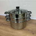 Пароварка изготовлена из высококачественной нержавеющей стали, обеспечивающей безопасность, легкость в уходе и долговечность. Многослойное индукционное дно быстро и равномерно нагревается, сохраняя тепло. Многоуровневая конструкция мантоварки позволяет приготовить несколько разных блюд одновременно. Крышка из термостойкого стекла и нержавеющей стали позволяет следить за процессом приготовления пищи без потери тепла. Ручки из термостойкого пластика защитят Ваши руки от воздействия высоких температур.